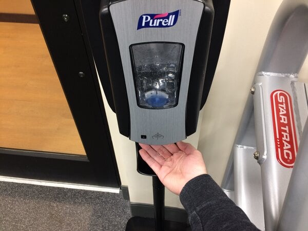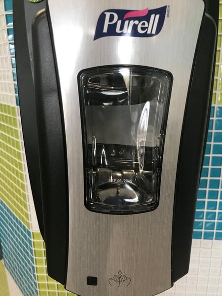 This purell touch-free automatic hand sanitizer dispenser is perfect for any restaurant, school or fitness center. This black and stainless dispenser looks great in any setting.