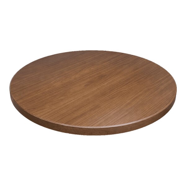 Elevate the dining experience at your restaurant or cafe with the QA Group 30" round high-pressure laminate MDF table top with walnut finish! Crafted with commercial-grade high-pressure laminate (HPL) construction, this table top is designed to withstand the demands of high-traffic establishments. The heavy-duty medium-density fiberboard (MDF) core adds durability and strength, allowing the table top to withstand heavy usage and humidity without warping.