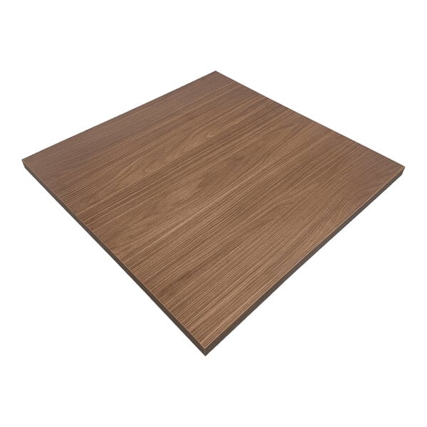 Elevate the dining experience at your restaurant or cafe with the QA Group 30" x 30" square high-pressure laminate MDF table top with walnut finish! Crafted with commercial-grade high-pressure laminate (HPL) construction, this table top is designed to withstand the demands of high-traffic establishments. The heavy-duty medium-density fiberboard (MDF) core adds durability and strength, allowing the table top to withstand heavy usage and humidity without warping.