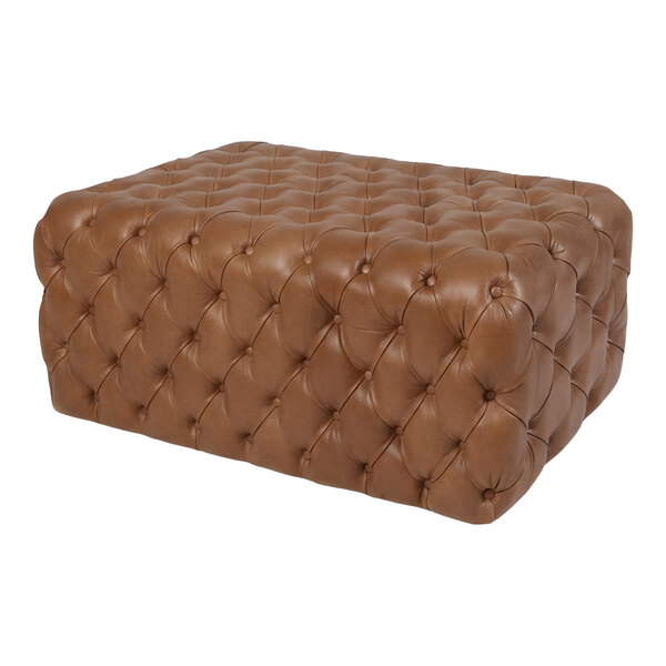 Combine reliable performance and aesthetic appeal in your commercial space with the QA Group brown faux leather oversized tufted modular ottoman. This luxurious ottoman is detailed with classic buttoning, creating a timeless and tailored appearance that exudes sophistication. Crafted with fully upholstered commercial-grade faux leather and high-density foam, this ottoman offers ultimate comfort and durability for your guests or customers. Its large, low-profile design provides flexibility in use, serving as a footrest, an accent chair, or shared seating for multiple individuals.