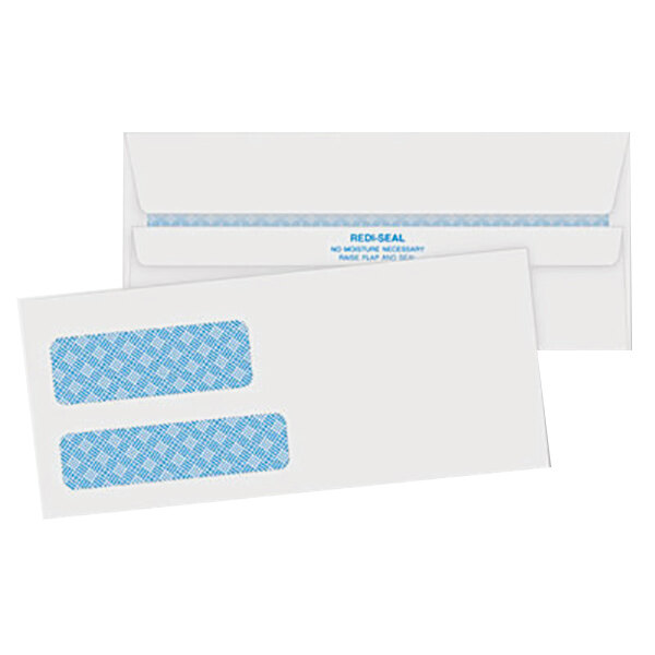 Seal and send your important business documents in this Quality Park 24529 #9 3 7/8" x 8 7/8" white security tinted business envelope with 2 windows and Redi-Seal closure. Featuring a 24 lb. basis weight and diagonal seam construction, this envelope is a sturdy and convenient way to mail items. It includes a Redi-Seal closure, which folds down for a secure and lasting hold. Plus, its security tint keeps contents private, making it a great option for sending sensitive information.