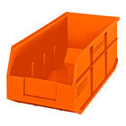 Create an organized industrial space with this durable Quantum 18" x 8 1/4" x 7" gray stackable shelf bin. Boasting a heavy-duty, virgin, high-density polypropylene construction and a strong, reinforced design that prevents spreading, this bin is extremely durable and can withstand daily wear and tear. Not only is this waterproof bin resistant to rust and corrosion, but it's also resistant to extreme cold, unaffected by weak alkalis and acids, and autoclavable up to 250 degrees Fahrenheit, making any type of storage possible! To ensure quick and easy access to the contents within, the bin's front hopper is open, yet features a raised front opening for maximum storage capacity. With its extra wide stacking ledge, you can stack multiple bins while maintaining stability.
