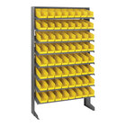This pick rack comes with 64 blue injection-molded bins with reinforced edges that are designed to withstand the rigors of commercial use, featuring a highly durable polypropylene construction that is impervious to most chemicals. To ensure quick and easy access to the contents within, the bins' wide front hoppers are completely open. Thanks to the built-in rear hanger on each bin, they are able to tilt out for total access when the bins are on the pick rack shelving. The bins also come with a molded-in label holder for quick and easy product identification. This unit requires assembly.