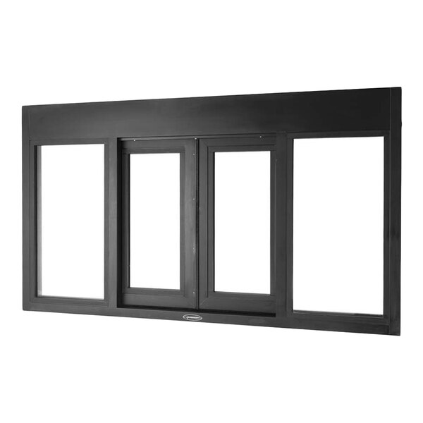 QuikServ 9518-BX Model BP-7241-E 72" x 4 1/2" x 41" Dark Bronze Anodized Aluminum Bi-Parting Automatic Drive-Thru Window with 1/4" Clear Tempered Glass
