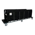 This unit has a yellow heavy-duty 18 oz. vinyl liner that is flame-retardant to NFPA-701 standards and resistant to mold, mildew, UV damage, and tears. This liner is also replaceable, allowing you to keep your truck in top condition. The sturdy, light weight tubular steel base has rounded corners to prevent injuries. This truck rolls on (6) 5" Clean Wheel System non-marking polyurethane swivel casters. These casters are specifically designed to deflect hair, lint, and debris, helping to reduce material buildup on the wheels. Assembly is required.