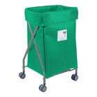 Enhance your laundry operations with this R&B Wire Products, Inc. laundry cart! This laundry cart is perfect for hotels, gyms, and healthcare facilities. It features a heavy-duty frame made of gray powder-coated steel. This unit includes a reusable 18 oz. navy vinyl hamper bag with a large 6 bushel capacity, allowing it to store plenty of used clothing and linens.
