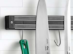 This space-saving product allows you to store your knives directly on the wall, freeing up valuable storage in your drawers and on your countertops. The magnetic knife holder offers easy access to your knives, helping your staff quickly identify which knife is right for the job and easily pull it off the wall.