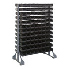 Quantum 36" x 20" x 53" Gray Steel Double-Sided Rail Rack with (192) 7 3/8" x 4 1/8" x 3" Black Bins and (12) Rails QRU-12D-220-192BK