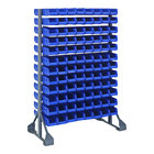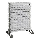 - Durable, heavy-duty steel rack with injection-molded polypropylene bins