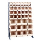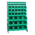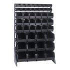 - Durable, heavy-duty steel rack with injection-molded polypropylene bins