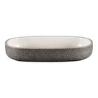 Enhance the presentation of your large dinner entrees with the RAK Porcelain Ease 10 1/4" x 7 3/16" forge oval deep porcelain plate. Crafted from premium-quality porcelain, this plate offers the elegance of natural stone with the durability of porcelain. Its raised rim design not only adds a modern touch but also ensures all contents, despite any dressing or sauce, are contained.