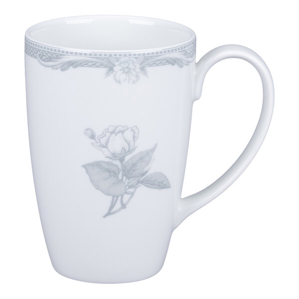 Enhance the presentation of your best offerings with this RAK Porcelain Floret 10.13 oz. light gray porcelain mug. Crafted from premium-quality porcelain, this mug offers superior durability and strength. Ideal for upscale restaurants and catered events, this mug features an elegant design with a glossy finish and handle. It's perfect for serving coffees, cappuccinos, lattes, and hot chocolates.