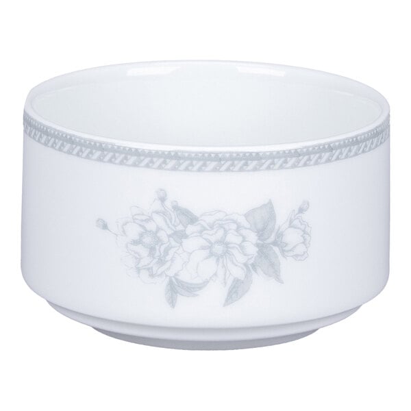RAK Porcelain Floret 10.13 oz. Light Gray Stackable Round Porcelain Soup Bowl with Handles - 12/Case