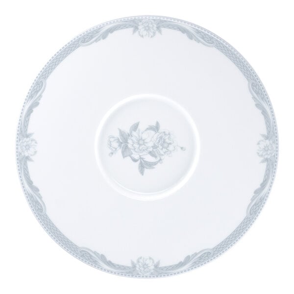Pair this plate with other pieces from the Floret line to complete your elegant table setting. The Floret line showcases an elegant, vintage floral pattern in a subtle light gray color against a warm white background. The design is inspired by toile with a modern touch!