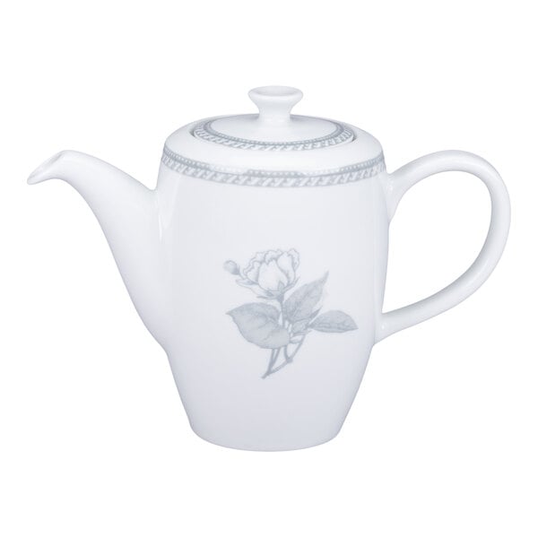 Enhance the presentation of your best offerings with this RAK Porcelain Floret 11.88 oz. light gray porcelain coffee pot with lid. Crafted from premium-quality porcelain, this pot offers superior durability and strength. Ideal for upscale restaurants and catered events, this pot features an elegant design with a glossy finish. The handle makes it easy to pour while the included lid keeps the contents warm. It's perfect for serving coffee, tea, and hot chocolate.