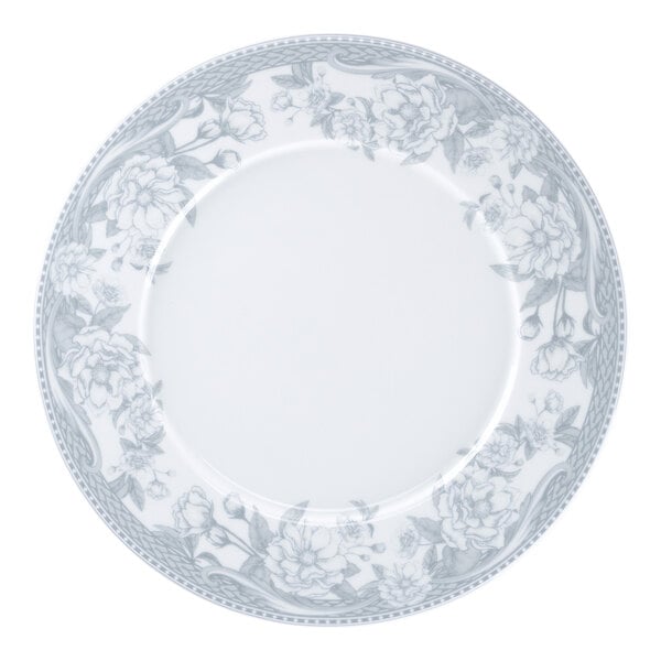 Pair this plate with other pieces from the Floret line to complete your elegant table setting. The Floret line showcases an elegant, vintage floral pattern in a subtle light gray color against a warm white background. The design is inspired by toile with a modern touch!