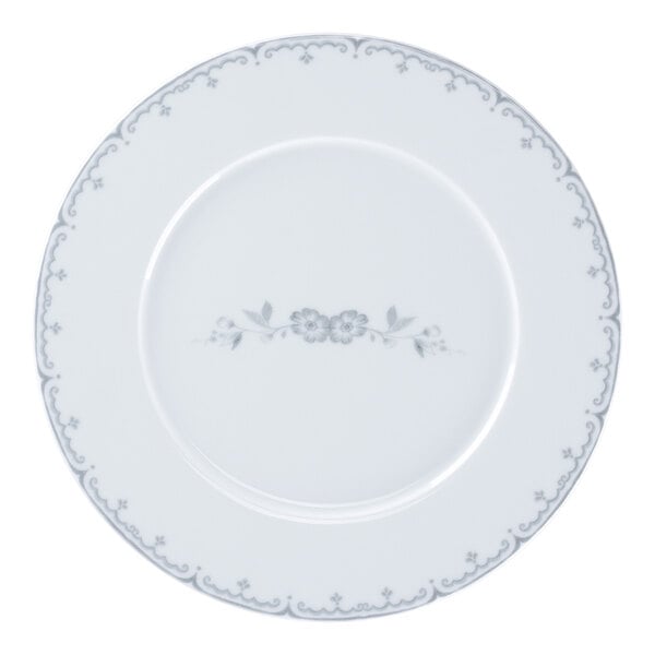 Pair this plate with other pieces from the Floret line to complete your elegant table setting. The Floret line showcases an elegant, vintage floral pattern in a subtle light gray color against a warm white background. The design is inspired by toile with a modern touch!