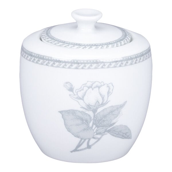 Enhance the presentation of your best offerings with this RAK Porcelain Floret 9.13 oz. light gray porcelain sugar bowl with lid. Crafted from premium-quality porcelain, this sugar bowl offers superior durability and strength. Ideal for upscale restaurants and catered events, this sugar bowl features an elegant design with a glossy finish. The included lid provides a secure fit to minimize spills and messes. It's perfect for serving sugar for coffee and tea service.