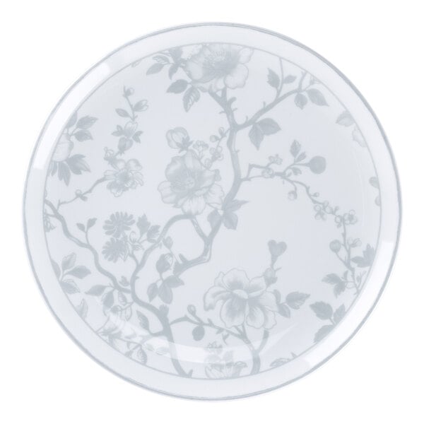 Pair this plate with other pieces from the Floret line to complete your elegant table setting. The Floret line showcases an elegant, vintage floral pattern in a subtle light gray color against a warm white background. The design is inspired by toile with a modern touch!