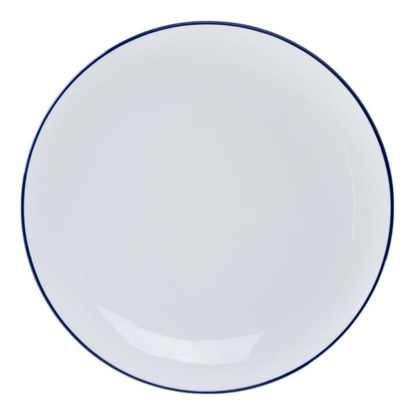 RAK Porcelain Rimz 11 1/2" White Round Flat Coupe Porcelain Plate with Blue Rim - 12/Case