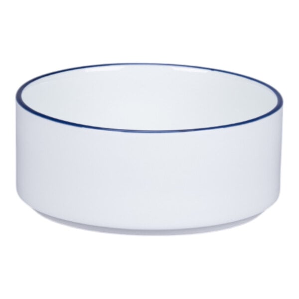 RAK Porcelain Rimz 11.8 oz. White Round Stackable Porcelain Bowl with Blue Rim - 12/Case