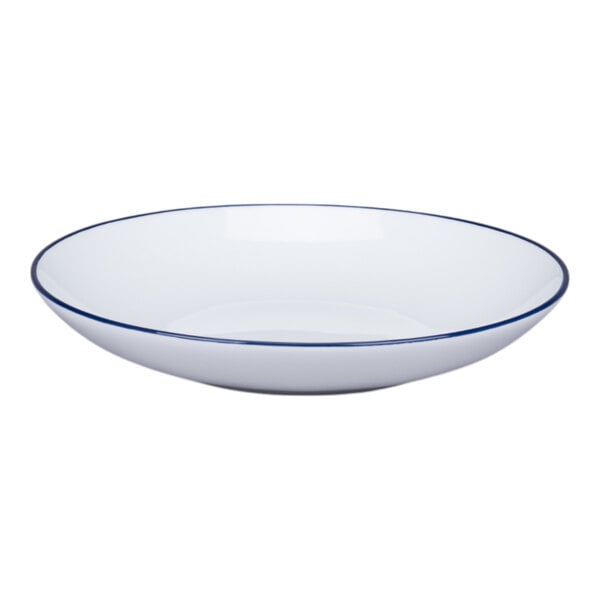 RAK Porcelain Rimz 23.5 oz. White Round Deep Coupe Porcelain Bowl with Blue Rim - 12/Case