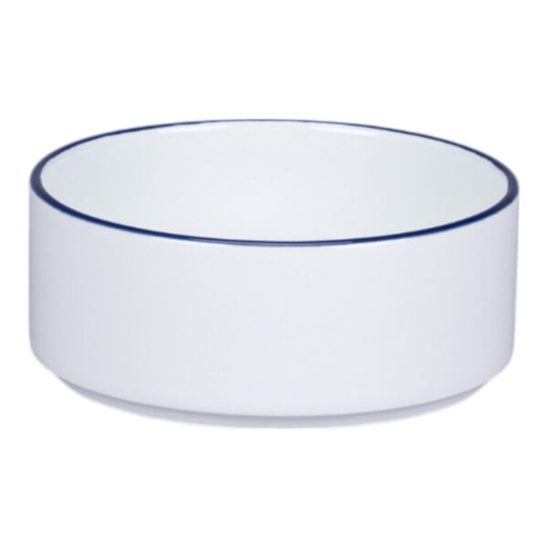 RAK Porcelain Rimz 5.4 oz. White Round Stackable Porcelain Bowl with Blue Rim - 12/Case