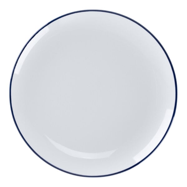 RAK Porcelain Rimz 8 1/4" White Round Flat Coupe Porcelain Plate with Blue Rim - 12/Case