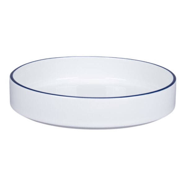 RAK Porcelain Rimz 8" White Round Stackable Deep Porcelain Plate with Blue Rim - 6/Case