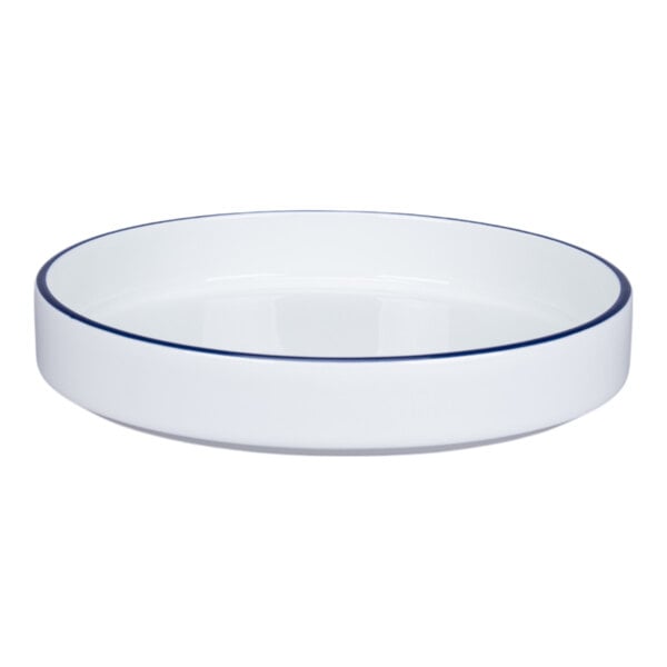 RAK Porcelain Rimz 9" White Round Stackable Deep Porcelain Plate with Blue Rim - 6/Case