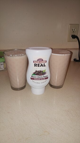 The Black Cherry Real Infused syrup is so good. We use them in our soda mixtures and in our teas and lemonade in our coffee shop.