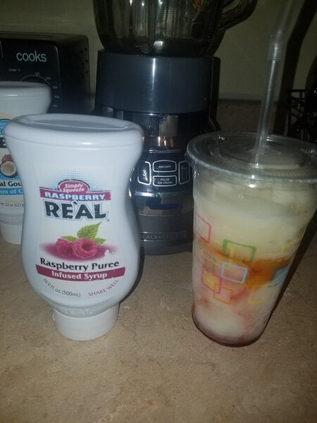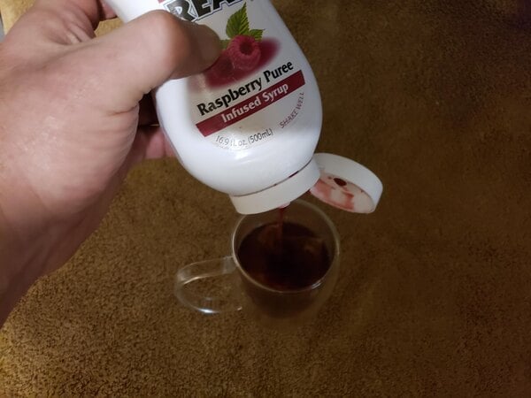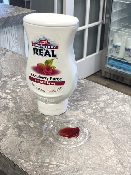 This raspberry puree infused syrup make the best add in to tea. it has the best raspberry flavor better than any I have tried and love the squeeze bottle