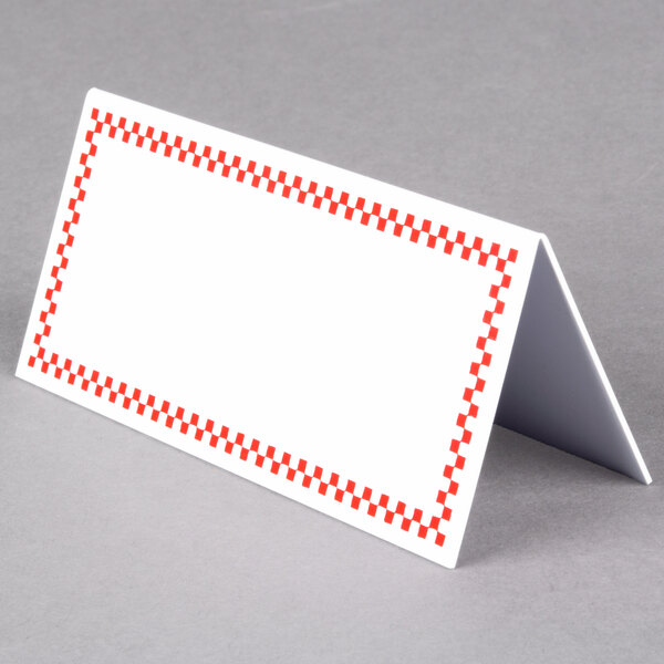 Rectangular Write-On Deli Tent Sign with Red Checkered Border - 25/Pack