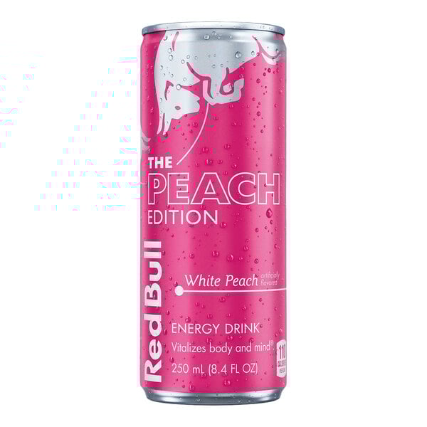 Refresh, recharge, and help revitalize your patrons with this Red Bull white peach energy drink. This product features the Red Bull branding your customers know and love in a fruity white peach flavor that's sure to be a hit! This beverage has been carefully crafted with high-quality ingredients, making it rich in vitamin B6, vitamin B12, and pantothenic acid. With amino acids and a kick of caffeine, this product is sure to keep your patrons energized and boost your sales!