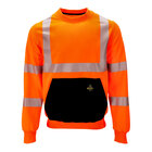 This crewneck sweatshirt is designed for versatility and safety. The lime and black exterior is bright, professional, and easy to see. It sports 2" segmented, reflective silver tape across the waist, chest, arms, and down the shoulders. This tape can help keep staff safe in low-lit, high-traffic zones. This crewneck is compliant with ANSI Type R Class 3 guidelines and is CSA Class 2, Level 2 compliant. It also sports a hand-warmer kangaroo-style pocket on its front and a convenient 2-stall pencil pocket on its left sleeve. This sweatshirt is the perfect blend of comfort and utility.