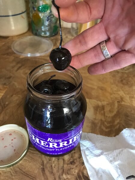 I'm in love with these dark purple maraschino cherries with stems. They are great for our Halloween cocktails and look amazing. They have a great taste as well. A great find.