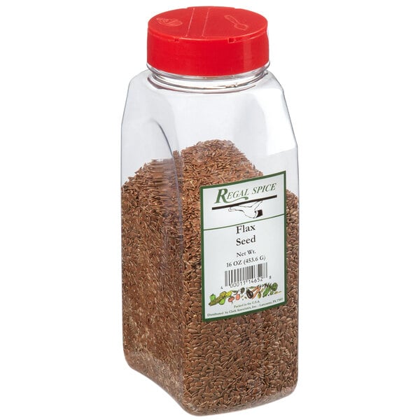Regal brown flax seed is sold in 16 oz. quantities and is perfect for a variety of sweet and savory dishes. First cultivated in Babylon as early as 3000 B.C., flax seed has grown in popularity over the past decade. Today, this ingredient can be found in anything from crackers and waffles to oatmeal. You can also use flax seed to crust chicken, shrimp, or salmon.