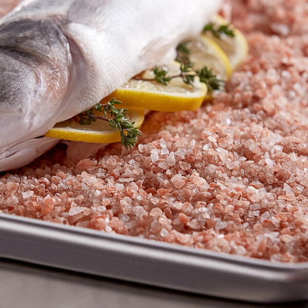 The salt's coarse grain offers a wide range of applications. Simply use this pink Himalayan salt to fill your front-of-the-house salt mills or grinders; its vibrant pink hues will instantly showcase your establishment's commitment to serving healthy, quality food. This salt is also ideal for salt roasting your fine cuts of meat and fish, as well as for use in brining applications.