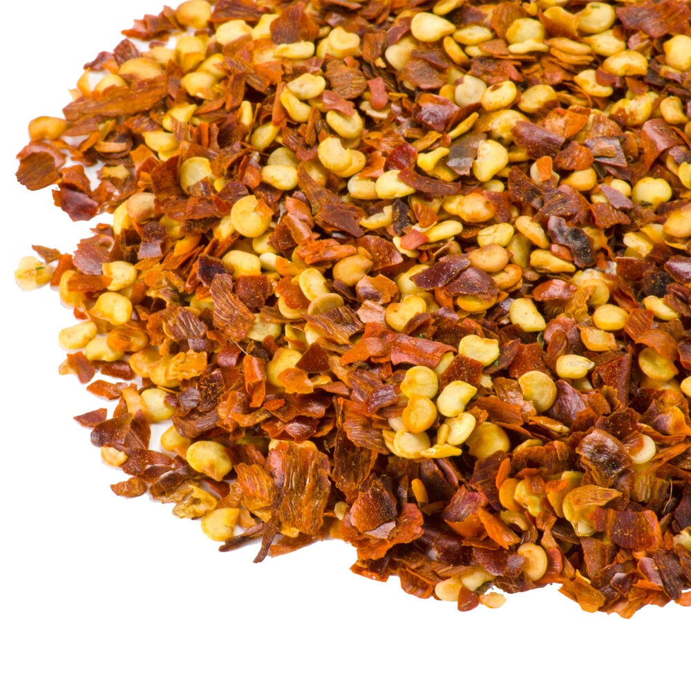 Hot and flavorful, this flaky red and orange spice includes pepper seeds for even more texture and flavor. Please note that a small amount of crushed red pepper will go a long way. It is recommended that you use no more than 1/4 tsp. per 4 servings of the dish you're preparing.