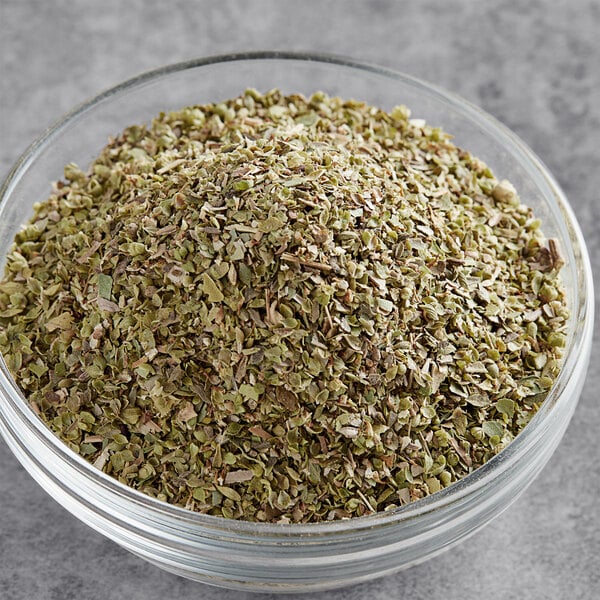 Regal fancy oregano leaves are an essential ingredient for any pizza or sub shop. This pungent herb has a warm and slightly balsamic, bitter taste that is perfect for dressings, marinades, and tomato-based sauces. Besides being great in Italian dishes, fancy oregano leaves can also be used in Turkish, Greek, and Mexican meals. Plus, with the 1.5 lb. container, this product guarantees less runouts in your high-traffic kitchen and is easily accessible for pantry storage.
