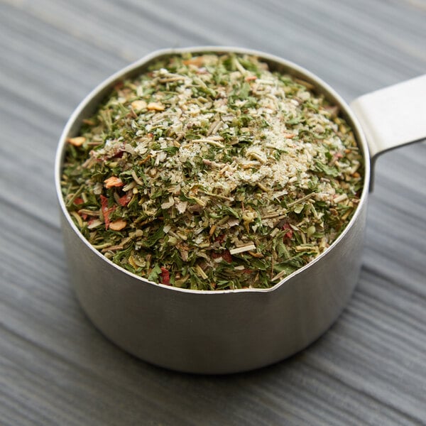 The Regal herbs and garlic blend has a zesty combination of flavors that is perfect for Italian restaurants, pizza places, and other restaurants.