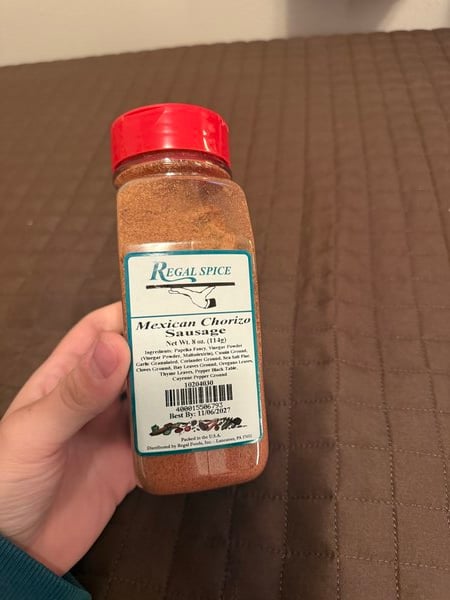 Craft delicious house made chorizo full of savory flavor with this Regal Mexican chorizo sausage seasoning! Made with a classic blend of salt, chile powder, garlic, onion, cumin, and other traditional herbs and spices, this seasoning contains everything you need to season your sausages to perfection. It can be used to flavor loose chorizo that's perfect for filling tacos, topping nachos, or adding to soups, or you can use it in your homemade sausage links.