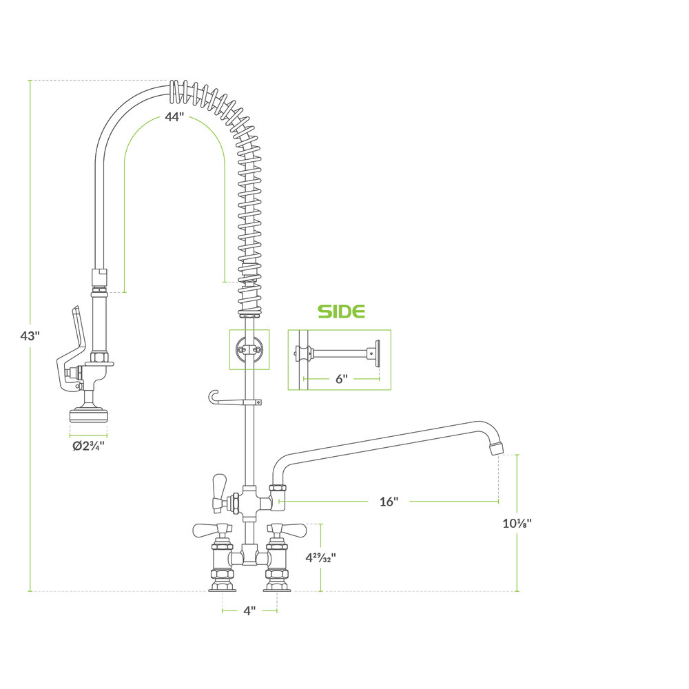 Pre-rinse faucets with a riser may include a wall bracket to help use the wall for added stability. Pre-rinse faucets without a riser will generally not include or need a wall bracket.