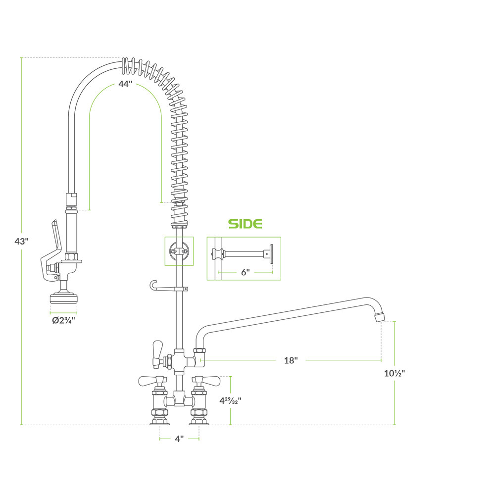 Regency 1.15 GPM Deck-Mounted Pre-Rinse Faucet with 4" Centers and 18" Add-On Faucet