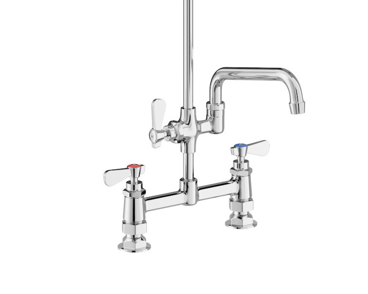 • Deck-mounted design with 8" centers and 1/2" NPT inlets