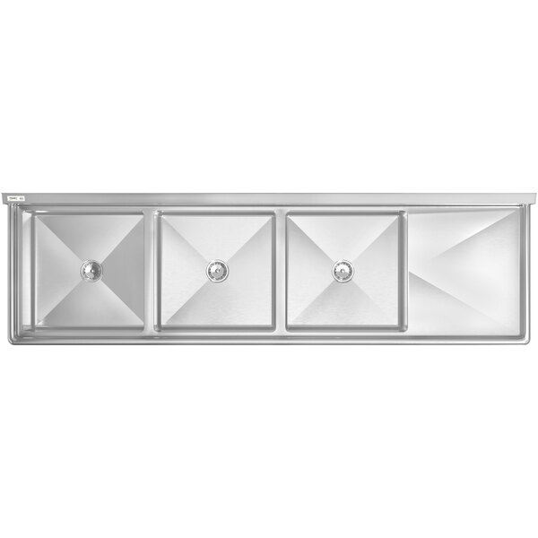 Great for busy commercial kitchens, this 3 compartment sink includes a right drainboard to maximize your work space. Plus, its durable construction and enhanced features make it easy to establish an efficient work flow to wash dishes or prep food.