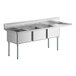 - Item #: 600s318242gRegency 94" 16 Gauge Stainless Steel Three Compartment Commercial Sink with Galvanized Steel Legs and 2 Drainboards - 18" x 24" x 14" Bowls