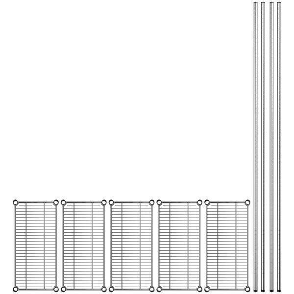 This 12” wide NSF chrome wire 5-shelf kit with 74” posts has a durable, commercial-grade construction to accommodate your canned goods, kitchen appliances, packaged food items, boxes of bulk ingredients, and tools. By using this product for storage in your restaurant, warehouse, dining hall, supermarket, or other business, you'll keep your supplies neat and organized. Plus, since this kit includes everything you need, setup is quick and easy. This shelving unit requires assembly.