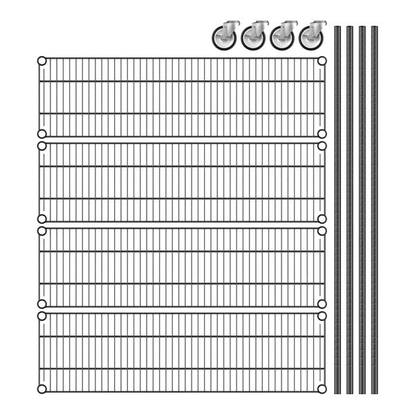 - Item #: 460b1424km74Regency 14" x 24" x 80" NSF Black Epoxy Mobile Wire Shelving Starter Kit with 4 Shelves