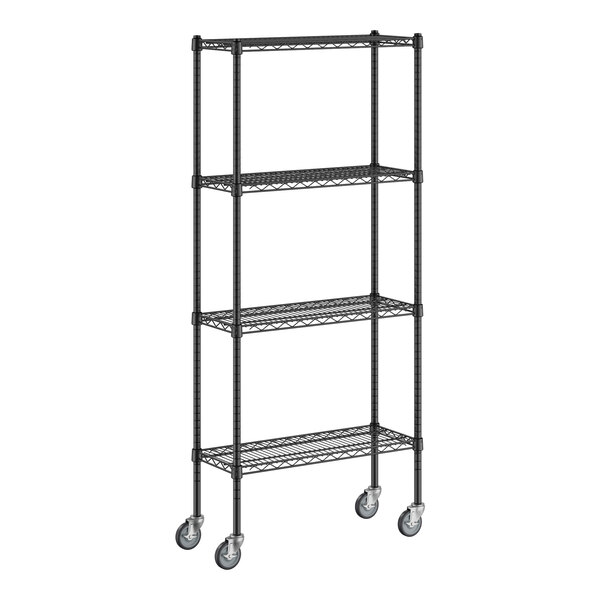 Regency 12" x 30" x 70" NSF Black Epoxy 4-Shelf Kit with Casters